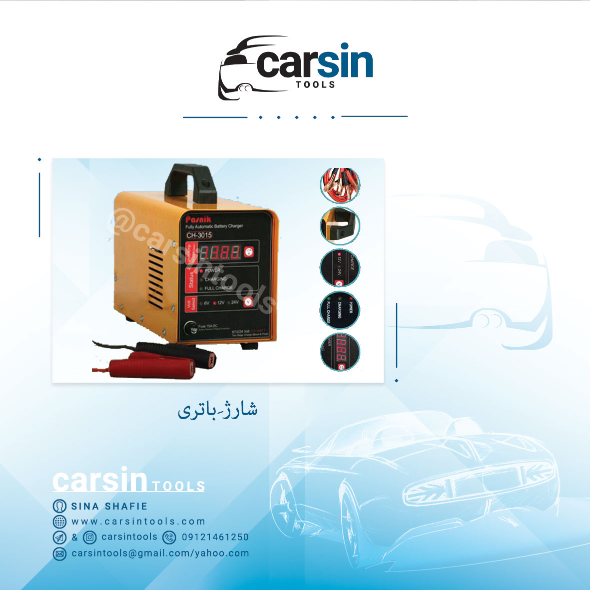 دستگاه شارژ باطری قابل استفاده برای باطری فروشی ها ، باطری سازی ها ، کارگاه های تعمیر خودرو و پروژه های صنعتی می باشد . مطابق با استاندارد های روز جهانی ساخته شده است .