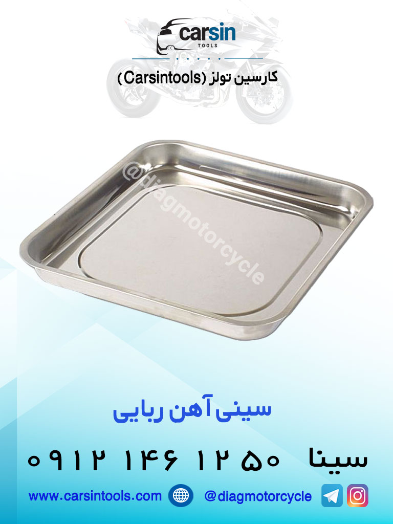 سینی آهن ربایی یا کاسه مغناطیسی که می تواند ذخیره سازی تمام قطعات آهن کوچک مانند پیچ و مهره، پیچ، مهره و غیره در دسترس و جلوگیری از ریزش در طبقه، میز کار و…. باشد.